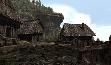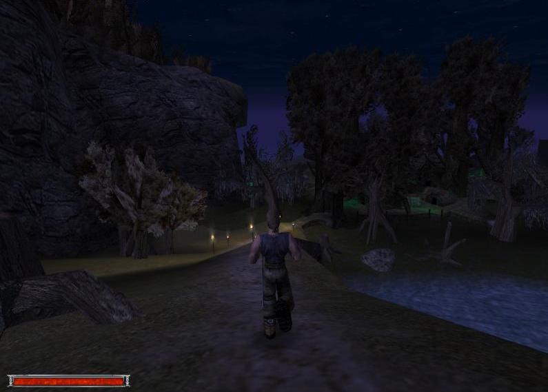 Обратите внимание на скалу, нависающую над болотным лагерем, слева. Смотрим одну из ранних фотографий Готики 3.