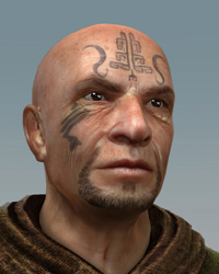 Мурдра недовольно обернулась. И застыла. "Почти как демон": пронеслось в ее голове. Лицо незнакомца, вошедшего в таверну через открытую дверь винного погреба было почти все покрыто черной вязью татуировок, но взгляд был приветлив и мягок. Этот контраст производил поистине ужасающее впечатление.