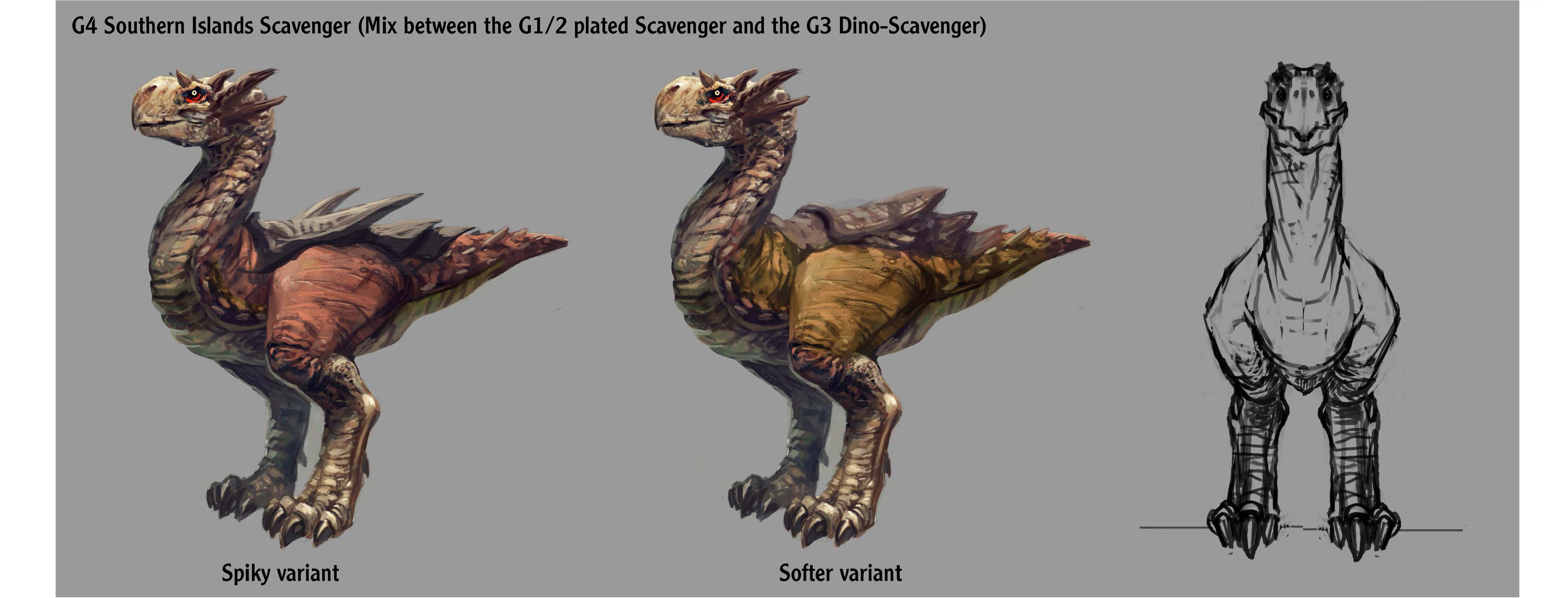 Падальщики южного архипелага немного отличаются внешне от своих родственников с материка и с более северных островов. Если там эта птица немного меньше, более худая, то падальщики Аргаана более массивны и поэтому значительно опаснее. К тому же костные наросты на голове и спине у южного вида этой птицы более широкие и прочные, нежели у их северных родственников.