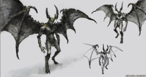 Демоны - сильная, хитрая и обладающая магическими способностями раса. Считается, что демоны разумны, а также, что они приходят в Моргард прямо из Ада Белиара. Сомнительно, что это так, но выглядят они поистине дьявольски - два мощных крыла, две человеческие руки под крыльями, уродливая физиономия, пасть, полная острых источающих яд клыков, тяжелый, напоминающий змеиный хвост, и, вдобавок, дыхание огнем.