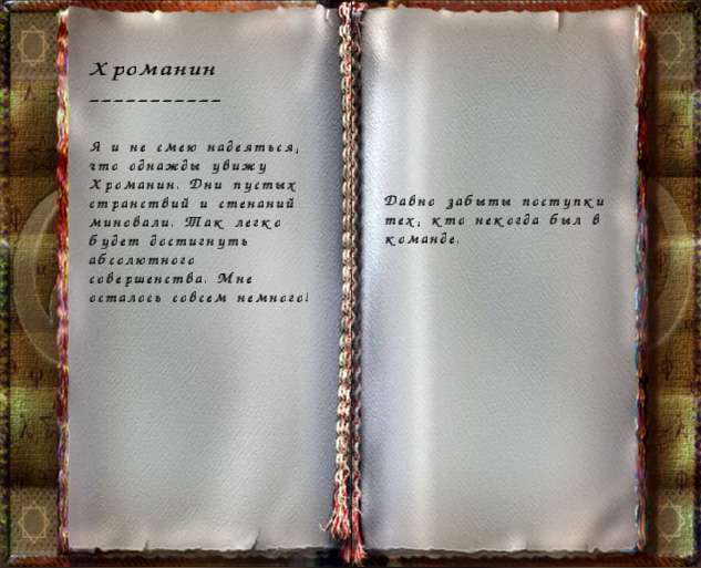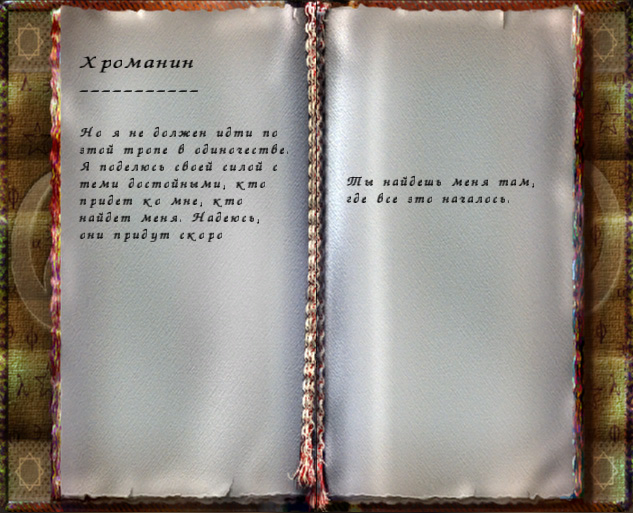 – Я знаю, где убежище пиратов. – без тени сомнения поведал Робар. – Очень давно, ещё во времена барьера я нашел странную книгу под названием Хроманин, и потратил много времени на поиск всех томов. Впоследствии, когда я нашел последний из них, то выяснилось, что поиски были бесполезны, но я чуть не погиб, ощутив на себе действие заклинания призыва. На меня набросился десяток скелетов, я лишь успел закрыться найденной книгой, которую разорвало пополам, раскидав по земле. – король провёл рукой по кромке листка, где был виден четкий разрез.