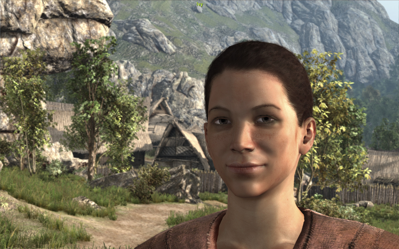 Американская гамма действительно ярковата. А вот Европейская в самый раз. Не могу сказать, что Фешир выглядит более ярко, чем стартовая локация в многострадальной Готике 3. В местном лесу для полной узнаваемости не хватало разве что зловещего рычания мракориса из пещеры. Порадовала проработка лиц.