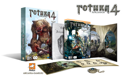 Диджипак-издание игры будет включать в себя DVD-диск с игрой «Готика 4: Аркания», диск с саундтреками, в который вошли 30 лучших композиций из игры, а также книгу рассказов о мире игры («Расколотая Дева») от Ханса-Йорга Кнабеля, автора сценария игры. Стоить такое издание будет 799р.