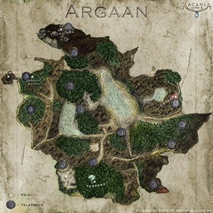 Использовав известную информацию, скриншоты и последние обзоры, мы решили сделать предварительную карту острова Аргаан. Острова, на котором и будут происходить основные действия игры. Это только первая версия карты. Она будет дополнятся постепенно новыми точками и поселениями. Те небольшие кружки на карте (голубоватого цвета) - это предполагаемые места расположения телепортов.