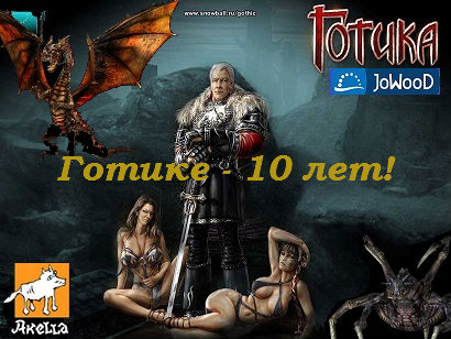 Уважаемые посетители, поклонники серии ''Готика''. Мы с радостью сообщаем вам, что сегодня, 15 марта у нашей любимой игры юбилей. Ей исполняется 10 лет. Ровно 10 лет назад вышел маленький проект, под названием "Готика", который впоследствии раскрутился и обзавелся фанатами.